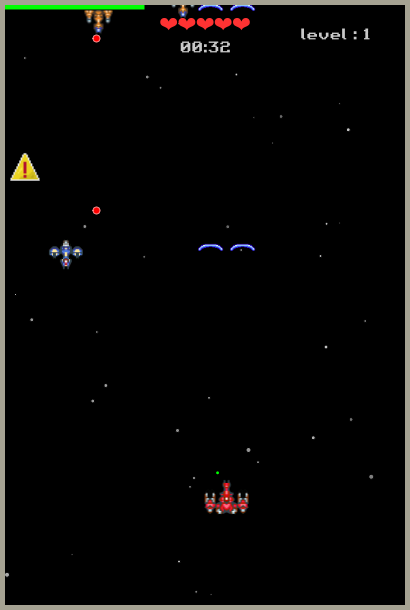 The game is a shoot 'em up with difficulty increasing over time. At 5 minutes, the boss spawns and